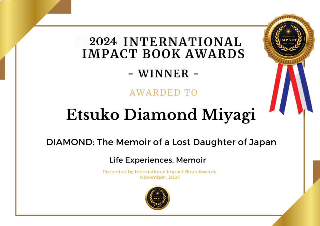 “In a world ravaged by conflict and loss, Etsuko Diamond Miyagi’s memoir, Diamond: The Memoir of a Lost Daughter of Japan is a shining testament to the beauty of love and the human spirit’s ability to overcome adversity.” – Chanticleer Book Reviews